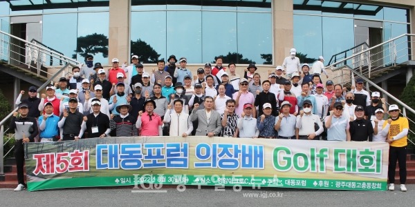 광주대동고 동문으로 구성된 ‘대동포럼(대표의장 강정구‧2회)’이 주최하고 광주대동고 총동창회(회장 이용표‧6회)가 후원한 제5회 대동포럼의장배 골프대회가 8월 30일(화) 전남 영암 아크로CC에서 총 26개 조 104명의 선수가 참가해 대성황을 이루며 동문 간의 우의를 다지고 끈끈한 단합을 과시했다.