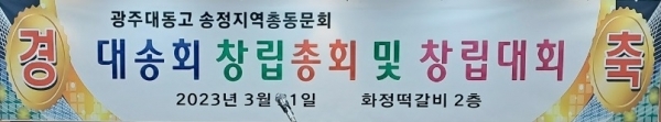 [광주일등뉴스=기범석 기자] 「광주 대동고 송정지역 총동문회(대송회, 회장 고광우)」가 3월 21일(화) 저녁 6시 30분에 광산구 화정떡갈비 2층에서 이용표 총동창회장, 강정구 대동포럼 의장 등 내빈과 회원 등 64명이 참석한 가운데 짱짱하게 첫발을 내디뎠다.