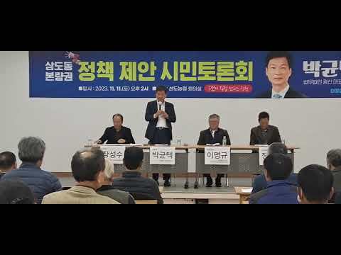 민주당 이재명 대표 법률특보인 박균택 「법무법인 광산」 대표 변호사는 11. 11(토) 오후 2시 광주 삼도농협 회의실에서 삼도‧본량권 주민 등과 함께 정책 제안·토론회를 열고, 광주형 일자리 완성을 위한 전용 주거단지 조성 방안에 대하여 깊이 있는 논의를 했다.