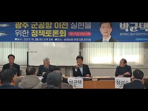 더불어민주당 이재명 대표 변호인으로 이재명 대표 법률특보인 박균택 「법무법인 광산」 대표변호사는 11월 25일 오후 2시 광산구 송정농협 5층 회의실에서 열린 「광주 군 공항 이전 실현을 위한 정책토론회」에서 “광주시가 군 공항과 민간 공항 동시 이전을 천명하고, 통합공항 무안군 이전 사업에 국토교통부가 참여할 수 있도록 ‘광주 군 공항 이전 특별법’을 개정해야 한다”고 주장했다.