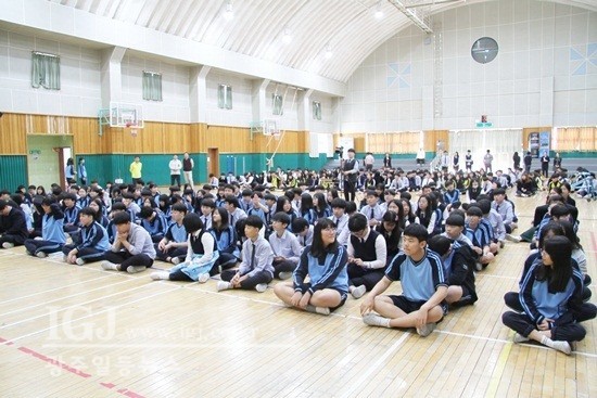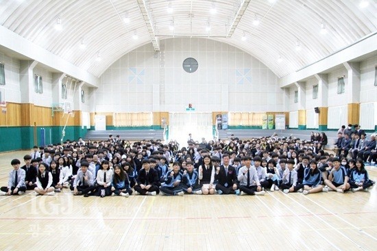 송정중학교 후배들은 자랑스런 선배 '박균택 광주고등검찰청 검사장'의 조언을 꼼꼼히 청취하고 있다.