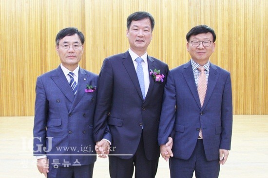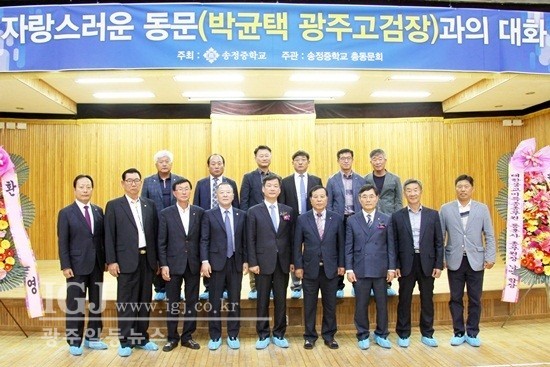 박균택 광주고등검찰청 검사장, 표찬 송정중학교총동문회장, 서기화 송정중학교교장은 송정중학교 자랑스런 동문 ‘박균택 광주고검장’과의 대화의 시간을 마친 후 "후배들에게 자랑스러운 선배가 되도록 최선의 노력을 다하겠다"며 기념촬영