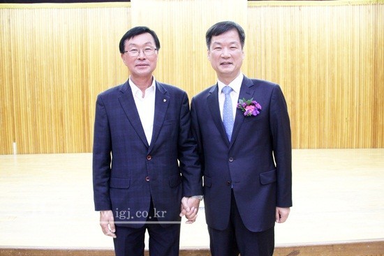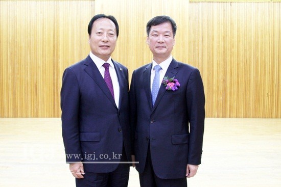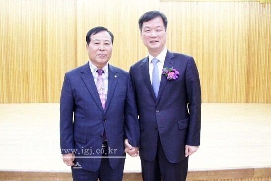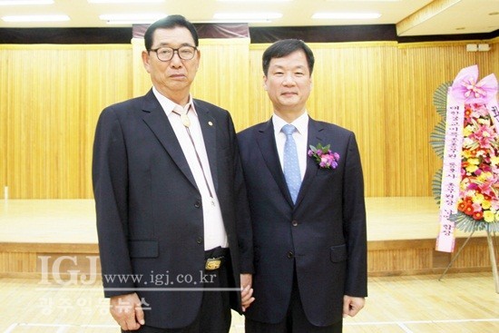 (오른쪽부터)박균택 광주고등검찰청 검사장, 표찬 송정중학교총동문회장