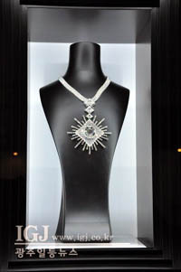 특히 박람회의 하이라이트인 ‘동방의 빛‘ 다이아몬드 목걸이는 다이아몬드와 플래티넘을 소재로 ‘새로운 도약을 축복하다’라는 이름의 화려하고도 우아한 디자인으로 꾸며졌으며 56억 상당의 동양 최고 걸작품으로 손꼽힌다.