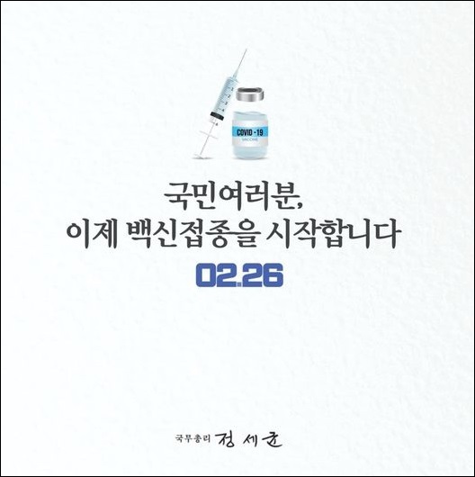 정세균 국무총리는 26일 페이스북을 통해 이같이 말하면서 “드디어 백신의 시간”이라며 “백신을 저처럼 오매불망 기다려 온 '세균'도 없을 것”이라는 유머까지 곁들였다.
