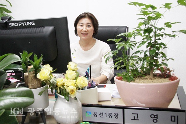 [광주일등뉴스=박부길 기자] 2021년 7월 26일 광주광역시 남구청(청장 김병내) 봉선1동으로 부임한 고영미 남구청 봉선1동장은 “봉선 1동은 안전행정부 주관 봉선노들 안심마을 시범마을에 선정되어 2013년 9월부터 민관네트워크 구축을 통해 지역 안전문화 정착 및 확산 등 안전 인프라 구축 사업을 역동적으로 추진해 오고 있으며, 2015년에는 주민들의 숙원사업인 봉선 1동 주민센터가 현재의 장소로 신축 이전되었다.”고 말했다.