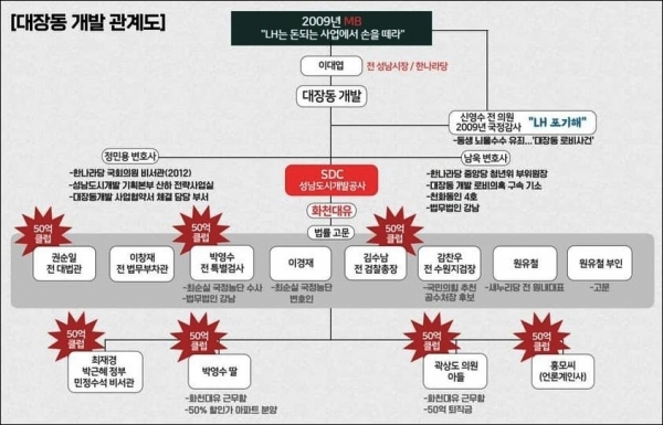 - 대장동 개발 투기판의 진짜 범인은 ‘한 몸통’이 된 국민의힘과 비리 법조인, 투기세력입니다.