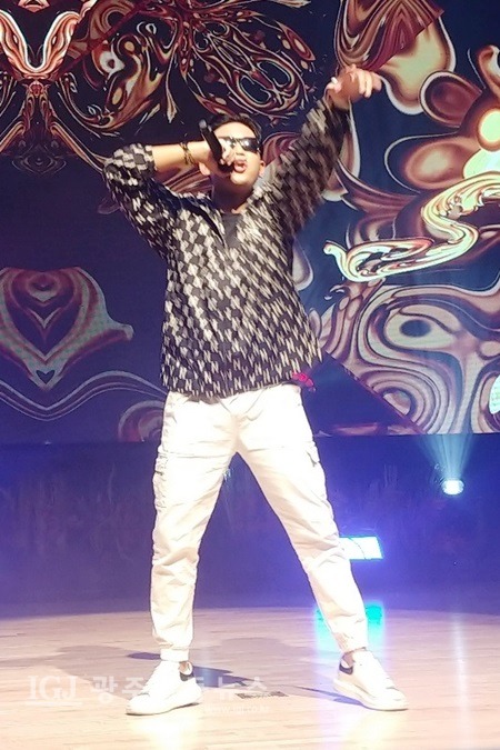 참가번호 3번 이주민씨는 2021년 제9회 G-POP페스티벌에서 멋진 춤과 노래로 경연을 펼치고 있다.