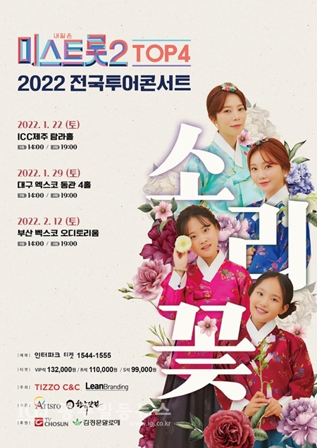 [광주일등뉴스=박부길 기자] 국악 트롯 요정 김다현이 코로나19로 지친 국민들에게 희망과 위로의 메시지를 전달하기 위해 '미스트롯2' 톱4 양지은, 홍지윤, 김태연과 함께 제주, 대구, 부산 등 전국투어 콘서트를 진행한다.