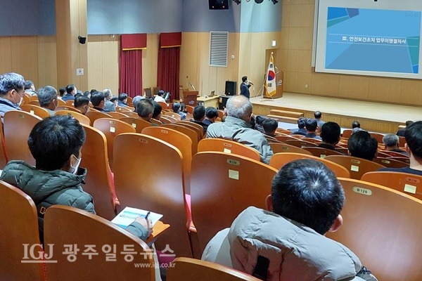 이번 교육은 중대재해처벌법 시행(’22.01.27)에 따라 건설현장 뿐만 아니라 전체 작업장(농업기반시설물, 청사 등)의 안전사고를 예방하고 안전보건 조치사항 준수를 위한 관리자 역량 강화를 목표로 마련됐다.