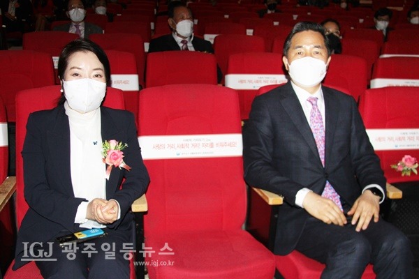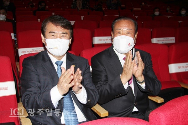 이정선 전광주교육대학교총장, 천익출 한국우리밀협동조합장은 광주시민 힐링음악회에 참석해 "코로나19 극복을 위한 힘내세요! 광주시민 힐링음악회'개최를 진심으로 축하드린다"며 축하를 전했다.
