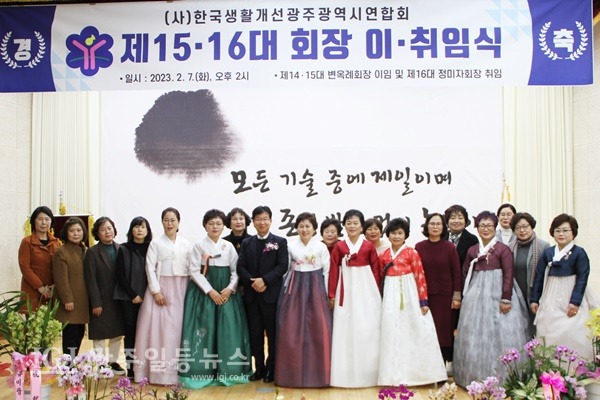 [광주일등뉴스=박부길 기자] (사)한국생활개선 광주광역시연합회는 7일 오후 2시 본관 2층 대강당에서 제15.16대 회장 이취임식을 개최했다.