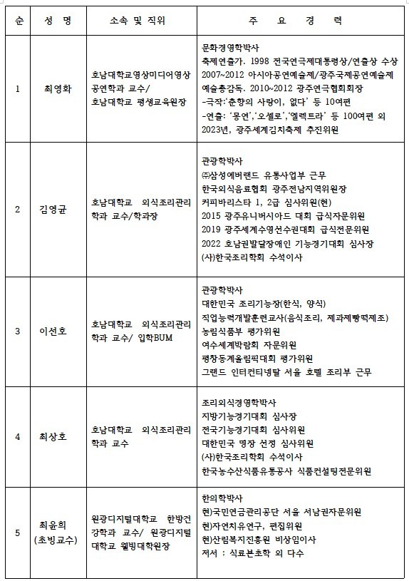 Q4. 호남대학교평생교육원 호호반찬 전문가 과정 강사진은 어떻게 되나요?
