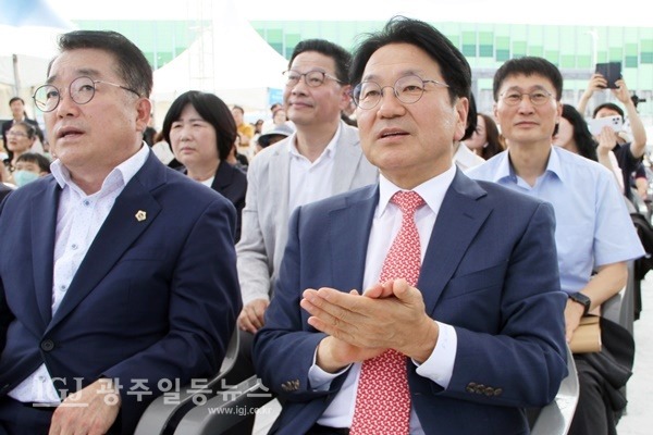 강기정 광주광역시장은 인사말을 통해 “오늘 착공하는 것은 그저 하나의 도서관 건물이 아니고, 광주의 미래를 짓는 일이다. 저는 착공되는 이 도서관에서 지역의 특성을 살린 맞춤형 지역프로그램이 운영되기를 기대한다.”며 “어디에서나 볼 수 있는 똑같은 도서관이 아니라, 지역의 특장점을 살린 개성 있는 도서관이 되기를 바란다. 청소년과 청년이 많은 젊은 도서관, 다문화 가족들이 갖는 다양성을 잘 담아내는 도서관, 포용도시 광주의 철학을 온전히 담아내는 도서관이 되기를 바란다”고 말했다.