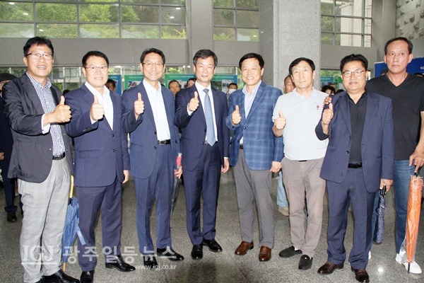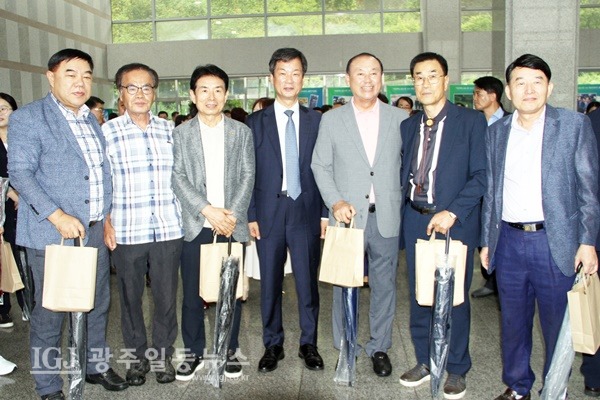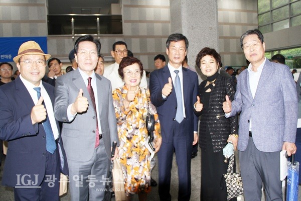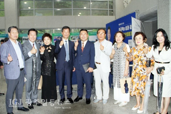박균택 전)광주고등검찰청검사장(변호사), 문희성 광주한빛성결교회목사, 김용배 광주군공항이전추진협의회공동대표겸 기획운영위원장과 축하객들은 "광산의 미래와 정치 문화의 발전을 위해 함께 힘과 지혜를 모아나자가"며 기념촬영