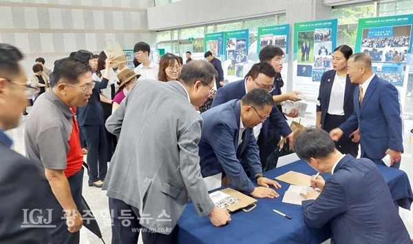 박균택 전)광주고등검찰청검사장(변호사), 배용주 전)광주지방경찰청장, 이개동 대표, 구만본 대표, 이덕헌 대표 등 축하객들은 "광산의 미래와 정치 문화의 발전을 위해 함께 힘과 지혜를 모아나자가"며 기념촬영
