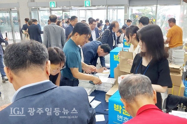 박 전)광주고등검찰청검사장은 내년 총선에서 광산구갑 출마를 준비 중이다. 이번 출판기념회에서는 ‘야권 탄합’, ‘민주주의 후퇴’, ‘어게인(AGAIN) 민주주의’라는 문구가 적힌 피켓으로 참석자들을 대상으로 캠페인을 전개하기도 해 눈길을 끌었다.