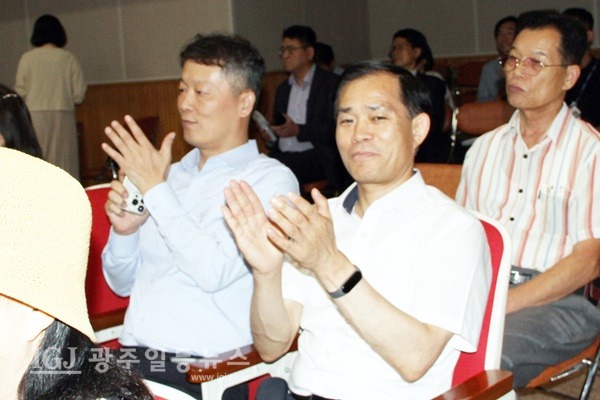 배복환 동구청부구청장은 내일이 빛나는 자치도시 광주, 자치구 소통의 날 행사에 참석해 강기정 광주광역시장의 민선8기 시정방향 설명을 꼼꼼히 청취하고 있다.