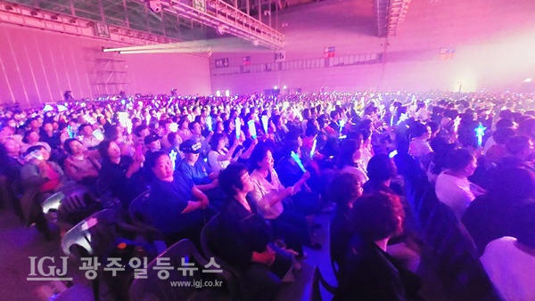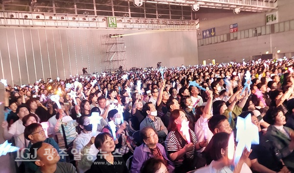 ‘현역가왕’ 전국투어콘서트 광주공연에 참석한 관객들이 김다현 트롯가수의 열창에 환호와 큰 박수로 함께하고 있다.