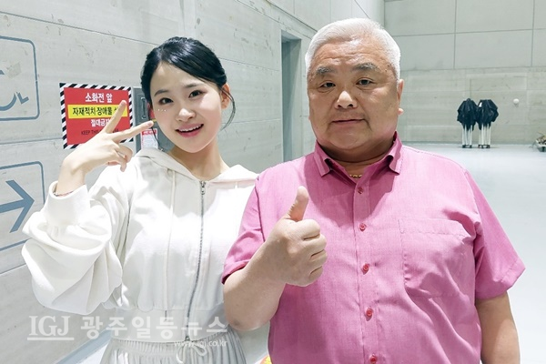 박부길 광주일등뉴스 대표와 김다현 트롯가수는 콘서트를 마친 후 "대한민국 국민과 세계인들에게 위로와 사랑받는 겸손한 가수가 되길 바란다"며 기념촬영
