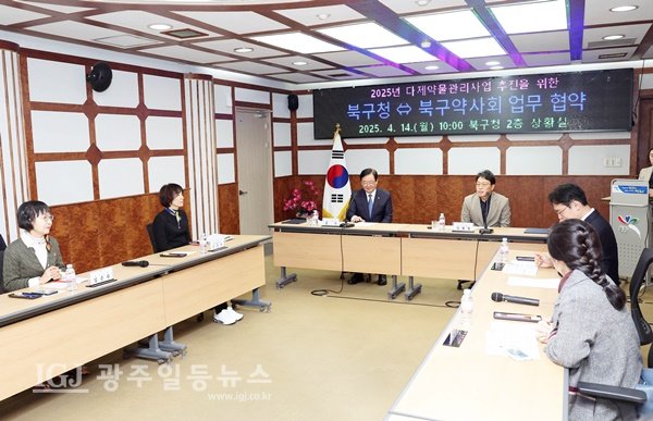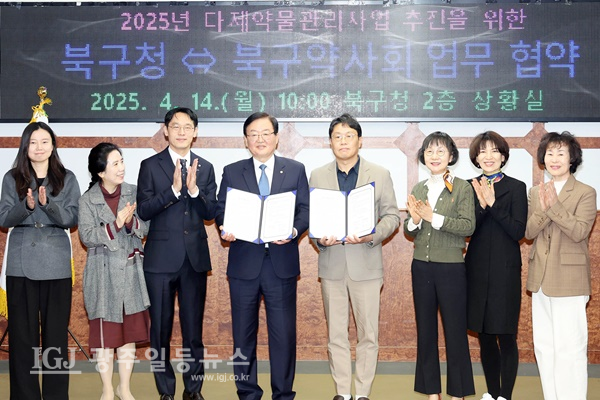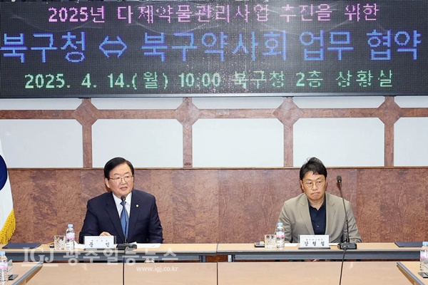 [광주일등뉴스=박부길 기자] 광주시 북구(구청장 문인)가 오전 10시 북구청 2층 상황실에서 취약계층의 약물 복용 관리를 위해 북구 약사회와 업무협약을 체결했다고 14일 밝혔다.