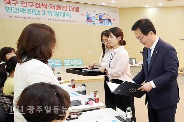 [광주일등뉴스=박부길 기자] 광주시 북구(구청장 문인)는 23일 오후 2시 인구정책·저출생 대응 민간추진단 3기 발대식을 갖고 본격적인 활동에 나섰다.