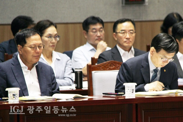 이날 회의에는 신수정 광주광역시의회의장, 강기정 광주광역시장, 고광완 광주시행정부시장, 이병철 광주광역시기획조정실장, 선석기 광주경제자유구역청장, 박남언 광주시의회사무처장, 임미란 광주광역시의원, 안평환 광주시의회행정자치위원장, 심철의 광주시의원, 명진 광주시의회교육문화위원장, 서용규 광주시의회부의장, 채은지 광주시의회부의장, 정다은 광주시의회운영위원장, 이명노 광주시의회예결위원장, 박수기 광주시의원, 강수훈 광주시의원, 최지현 광주시의회환경복지위원장, 박필순 광주시의회산업건설위원장,박미정 광주시의원, 홍기월 광주시의원, 심창욱 광주시의원, 김용임 광주시의원, 박희율 광주시의원, 김준영 광주시시민안전실장, 김일융 광주시상수도사업본부장, 주재희 광주시경제창업국장, 김종호 광주시경제자유구역청혁신성장본부장, 이승규 광주시신활력추진본부장, 임태형 광주시감사위원장, 최태조 광주시인공지능산업실장, 박용수 광주시민주인권평화국장, 정현윤 기후환경국장, 김영선 광주시교통건설국장, 오영걸 광주시종합건설본부장, 정원석 광주시자치행정국장, 이영동 광주시여성가족국장, 정영화 광주시복지건강국장, 김기숙 광주시교육청년국장, 고영국 광주시소방안전본부장, 박광석 광주시대변인, 김상율 광주시인사정책관, 전은옥 광주시정책기획관, 배현숙 광주시의회의정담당관, 이계두 광주시노동정책관, 광주광역시 간부들이 참석했다.