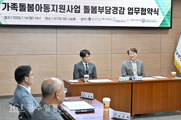 서구는 14일 서구청 나눔홀에서 김이강 서구청장을 비롯해 초록우산 어린이재단 변정근 광주지역본부장, 금호·시영·쌍촌종합사회복지관 관장 등이 참석한 가운데 가족돌봄아동 지원을 위한 업무협약을 체결하고 ‘광주 온(ON)돌봄’ 사업을 본격 추진한다.