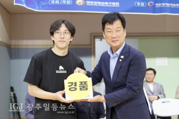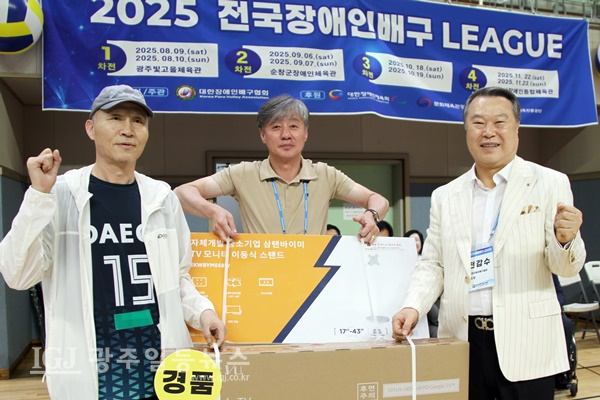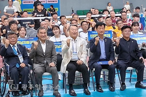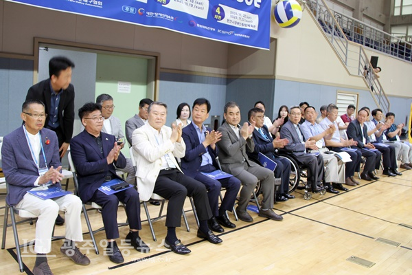 전갑수 대한장애인배구협회장(광주광역시체육회장), 박균택 국회의원, 박승재 체육진흥실장, 김종일 회장은 2025 전국장애인배구 리그전에 출전한 선수들을 향해 따뜻한 격려와 힘찬 응원을 보냈다.