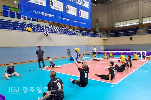 대한장애인배구협회 소속 선수들은 2025 전국장애인배구 리그전 개막식에서 열띤 경기를 펼치고 있다.