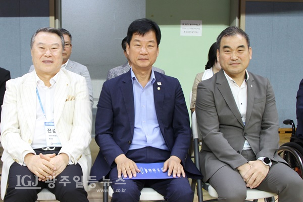 이날 개회식에는 전갑수 대한장애인배구협회회장(광주광역시체육회장), 정진완 대한장애인체육회장을 대신해 박승재 체육진흥실장, 김종일 회장, 박균택 국회의원, 강기정 광주광역시장축화기, 신수정 광주시의회의장 축하기, 조인철. 안도걸. 정준호. 정진욱. 양부남 국회의원, 문인 북구청장. 김병내 남구청장. 박병규 광산구청장. 김이강 서구청장 축하기, 한상득 광주시장애인체육회상임부회장, 전진숙 국회의원 보좌관 이세민, 이강식 충청남도장애인배구협회장, 이영길 경남지체장애인연합회진주시지회장애인인식개선센터장, 김재진 나주시장애인체육회나주좌식배구회장, 주광자 광주시장애인여자배구선수대표, 오탁중 남자배구선수대표, 이정중 심판대표, 전국 13개시도 임원과 선수들이 참석한 가운데, 장애인 배구의 발전과 화합을 다짐하는 뜻깊은 자리가 마련됐다.