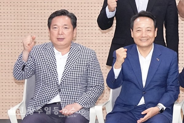 강기정 광주시장은 “최근 광주시는 6000억원 규모의 AI 2단계 예타 면제 등 큰 성과를 거뒀고, 내년 정부 예산안 역시 역대 최대 규모인 3조7000억원이 반영됐다”며 “이러한 일들이 가능한 것은 광주가 원팀이 돼 함께했기 때문이다. 이제 곧 시작될 AI컴퓨팅센터 광주 유치에도 모두가 함께 혼신의 힘을 모아달라”고 말했다.