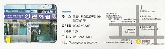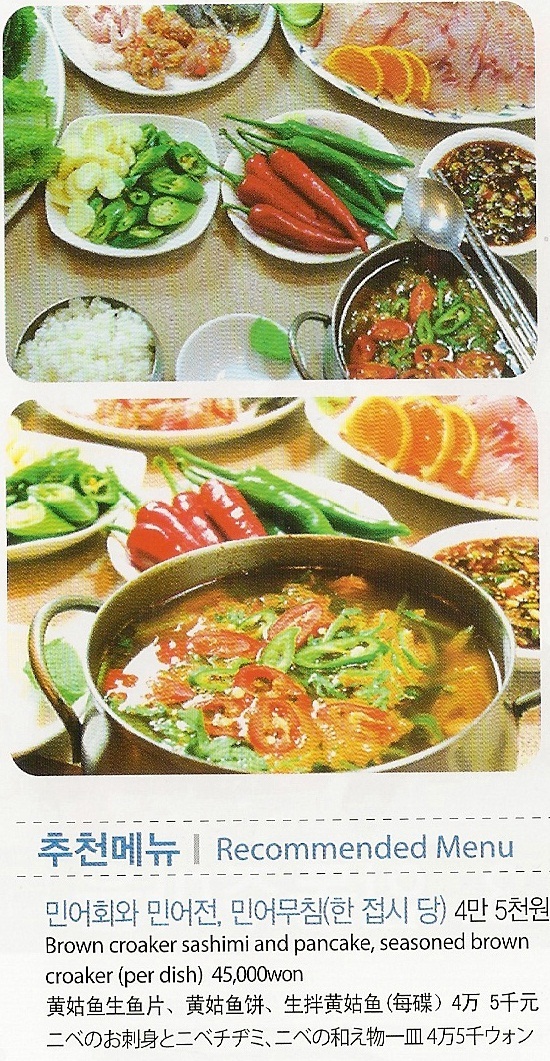 <전라남도 제공> 모친과 딸, 며느리 3대가 40년 째 운영 중인 민어전문 횟집으로 민어회, 민어무침, 민어죽, 민어전, 매운탕, 지리 등 민어 요리의 모든 것을 맛 볼수 있다. 싱싱한 재료와 직접 담그는 장류, 특히, 싱싱하고 쫄깃한 민어와 찰떡궁합을 이루는 초장은 6개월 삭힌 막걸리 식초로 만들어 맛이 일품이다.