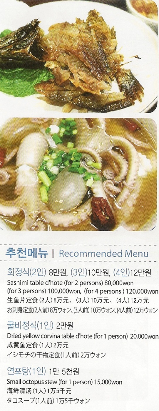 바닷가 맞은편에 자리한 지중해풍 흰색 건물이 눈에 띄며, 소규모로 하던 장사를 오직 입소문만으로 현재의 규모로 확장 할 만큼 빼어난 맛과 화려한 상차림을 자랑한다. 서해안 인근에서 잡은 활어를 즉석에서 요리하며, 대표음식으로는 회정식, 굴비정식, 연포탕 등이 있다.