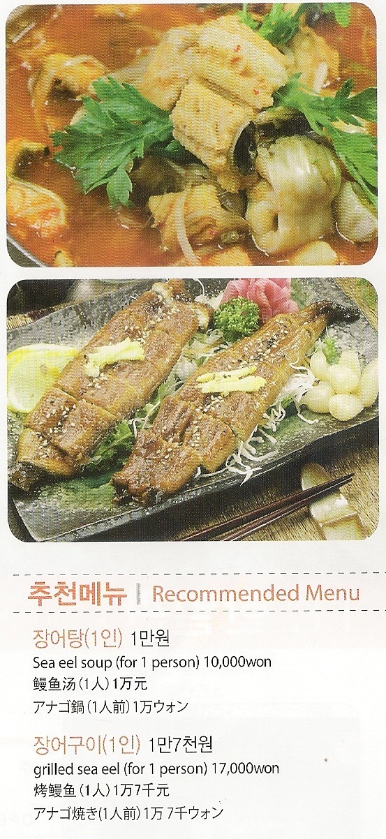 펄떡펄떡 살아 숨 쉬는 바다장어와 걸쭉한 육수. 재료구입에서부터 보관까지 최고의 맛과 신선도를 추구하는 2대의 자부심이 구이용 소금 하나까지 최상품만 선택하며, 당일 새벽시장에서 구입한 장어의 참맛을 위해 6시간 이사 우려낸 육수와 천연 암반해수를 사용한다.