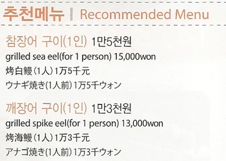 주소: 여수시 문수4길 14-13(문수동), OPEN 11:00~22:00, 좌석수 120 , TEL: 061)653-9500 여수와 통영 앞바다에서 잡은 붕장어를 사철 활어로 사용하며, 장어 특유의 비린내를 가시게 하는 특제소스는 50년 전통을 자랑한다. 깨장어구이 전문으로 단층 통나무로 지어진 가게 분위기가 운치 있으며, 맛이 담백하고 고소해 여수에서 깨장어가 가장 많이 팔리는 집으로 명성이 자자하다.
