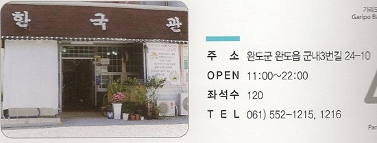'건강의 섬 완도'에서만 맛 볼 수 있는 신선한 해산물과 완도근해에서 해풍을 맞고 자란 1등급 한우 등 최고의 재료를 바탕으로 전라남도 요리대회 수상경력의 정광필 대표 솜씨가 더해져 입소문을 듣고 찾아 온 손님들에게 신선한 자연의 맛을 선물한다.