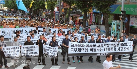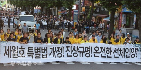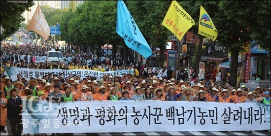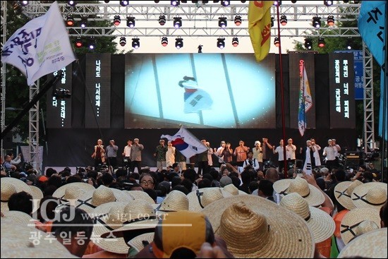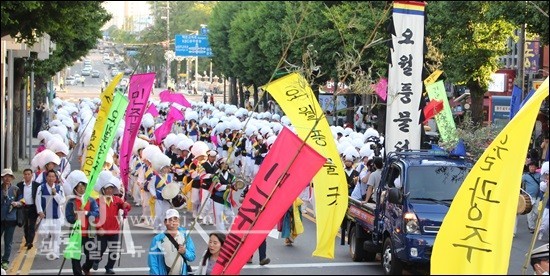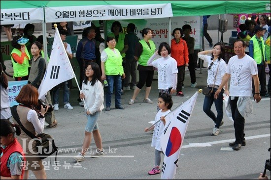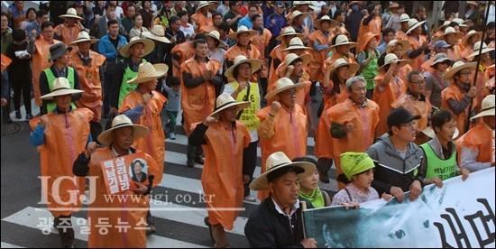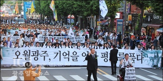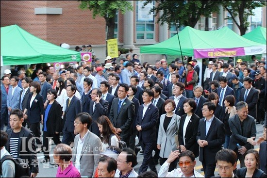 이날 민주대행진은 5월풍물굿이 길라잡이를 하는 가운데, 5월 가족들을 선두로 백남기 대책위, 세월호 4·16연대가 뒤를 이었으며, 그 뒤로 윤장현 광주시장, 장휘국 시교육감, 더불어민주당 문재인 전 대표, 정의당 심상정 대표 등이 뒤따랐다.