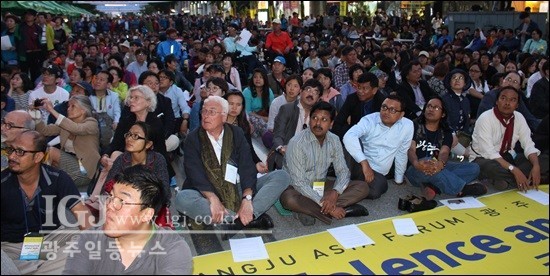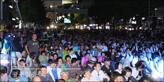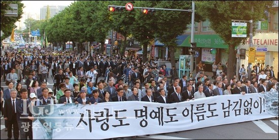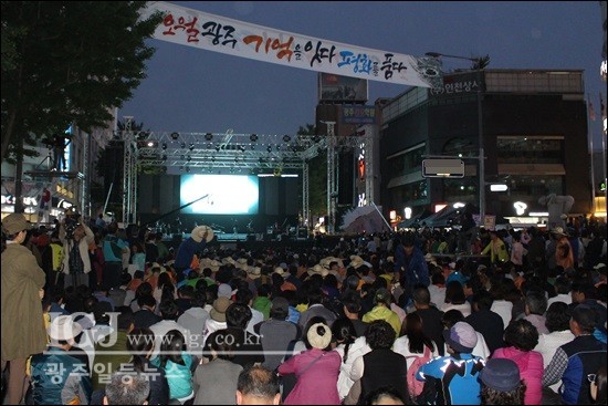 [광주일등뉴스=기범석 기자] 5·18민중항쟁 36주년 하루 전날인 17일 오후 6시 광주공원에서 금남로를 향해 민주대행진이 이루어졌다.
