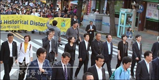 우상호 원내대표, 이개호 전남도당 위원장, 송영길 전 인천시장 등 더불어민주당 당선자들이 민주대행진에 동참하고 있다.