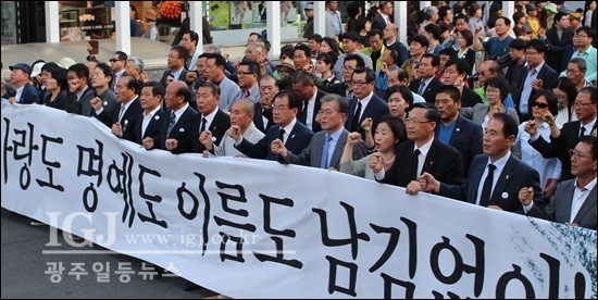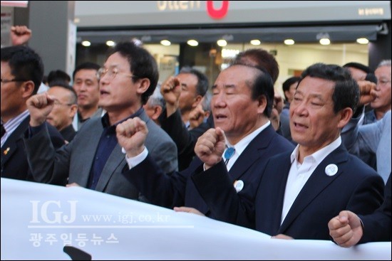 '임을 위한 행진곡'을 제창하는 교육감들과 시장.