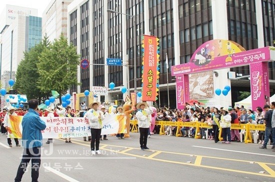 광주축산농협은 소달구지팀은 송아지가 소달구지를 끌게 하는 등 농악대와 고적대가 축산농민과 함께 하며 흥을 돋는 퍼래이드를 펼쳤다.
