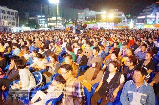 제4회 G-POP페스티벌에 참석한 시민과 관람객들은 출연자들의 공연과 경연에 열띤 응원을 보내고 있다.