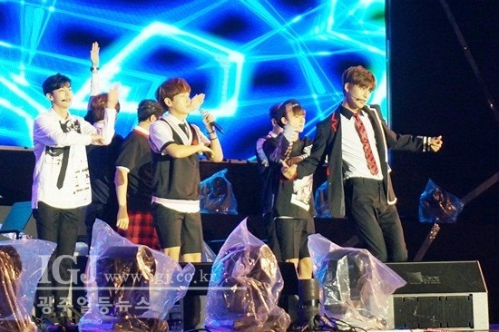 제4회 G-POP페스티벌에 참여한 출연진들이 관람객들에게 인사를 하고 있다.