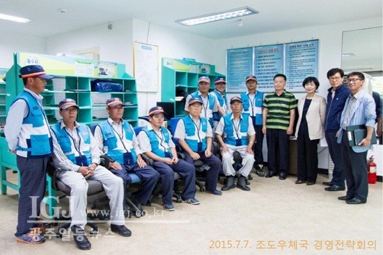 진도우체국 관내 조도우체국 직원들과 경영전략회의 마치고 기념촬영.