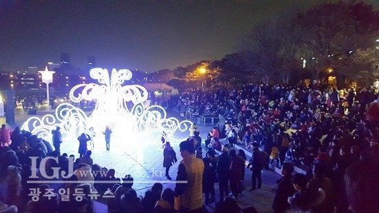 고양시 호수공원에서 개최된 ‘2016고양호수꽃빛축제’는 크리스마스이브인 24일과 희망찬 2017년을 맞이하는 31일 아름다운 불빛과 어우러진 예술불꽃쇼가 화려하게 펼쳐진다. 사진은 점등식이 있었던 지난 17일 불꽃쇼를 기다리는 관람객들의 모습. 환상적인 빛의 하모니 ‘2016고양호수꽃빛축제’는 오는 1월 8일까지 개최되며 야간 무료관람은 평일 18시에서 22시, 주말 18시에서 23시까지다.