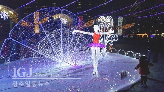고양시 호수공원에서는 겨울밤을 수놓는 환상적인 빛의 파노라마 ‘2016고양호수꽃빛축제’가 한창이다. 사진은 발레 하는 조형물 앞에서 포즈를 취해보는 어린이의 모습. 반짝반짝 로맨틱 꽃빛 세상 ‘2016고양호수꽃빛축제’는 고양시 호수공원 고양꽃전시관 실내외에서 내년 1월 8일까지 개최되며 화려한 예술불꽃쇼, 어린이 캐릭터 공연, 따뜻한 힐링 공간 속 다양한 공연 등으로 축제의 분위기를 더욱 뜨겁게 달굴 예정이다.